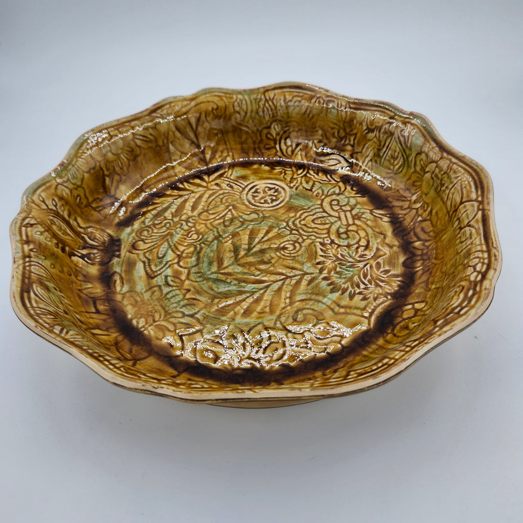 This pineapple-coloured ceramic pie dish could be used either as a pie dish, or a serving dish for vegetables, or even a fruit bowl. Pair with other Sthal serving dishes and table ware.
