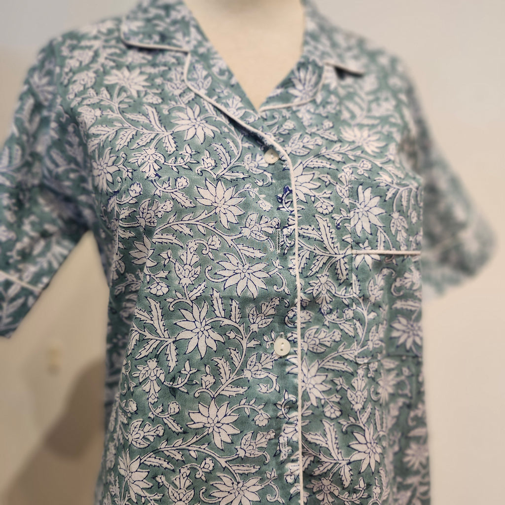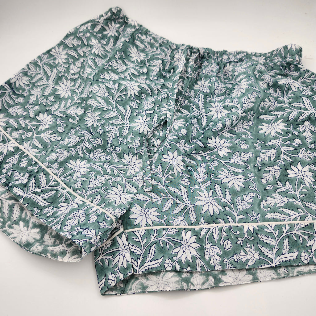 Block Print Pyjama Short Floral Teal