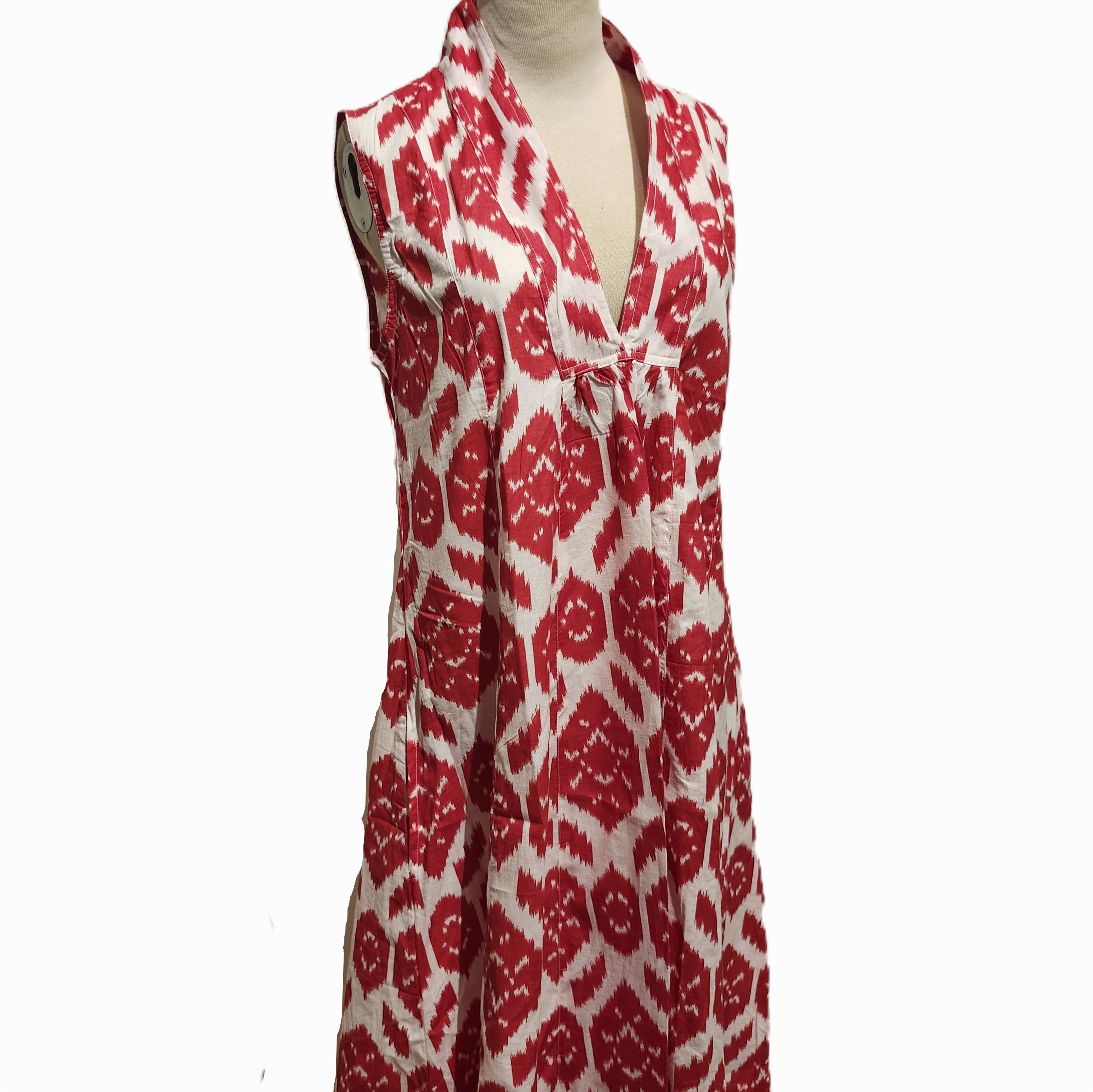 The 'May' dress is sleeveless, lightweight and cool.   It can be worn either as an A-line dress, or belted at the waist for a more tailored look.  After a couple of washes, the dress will become incredibly soft.