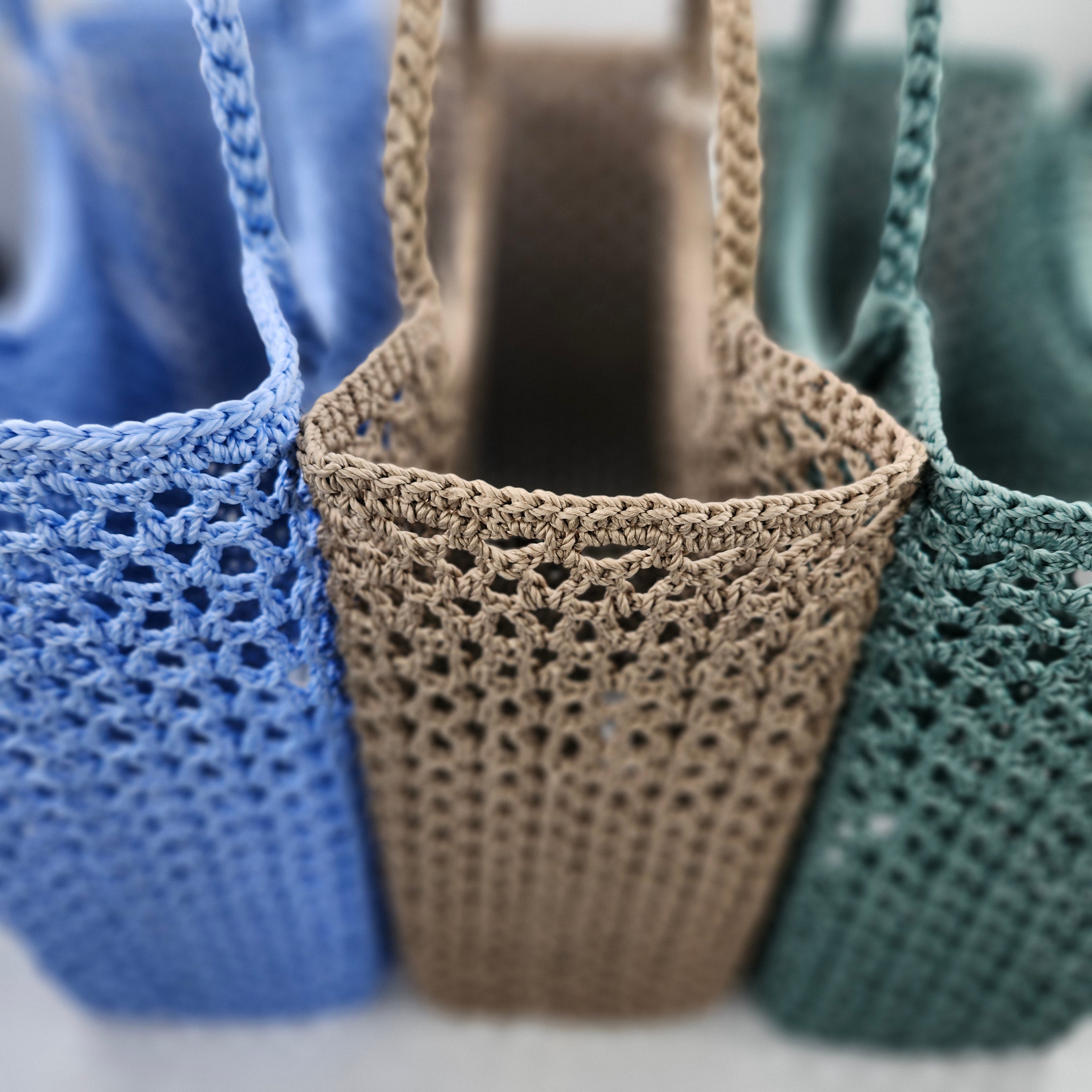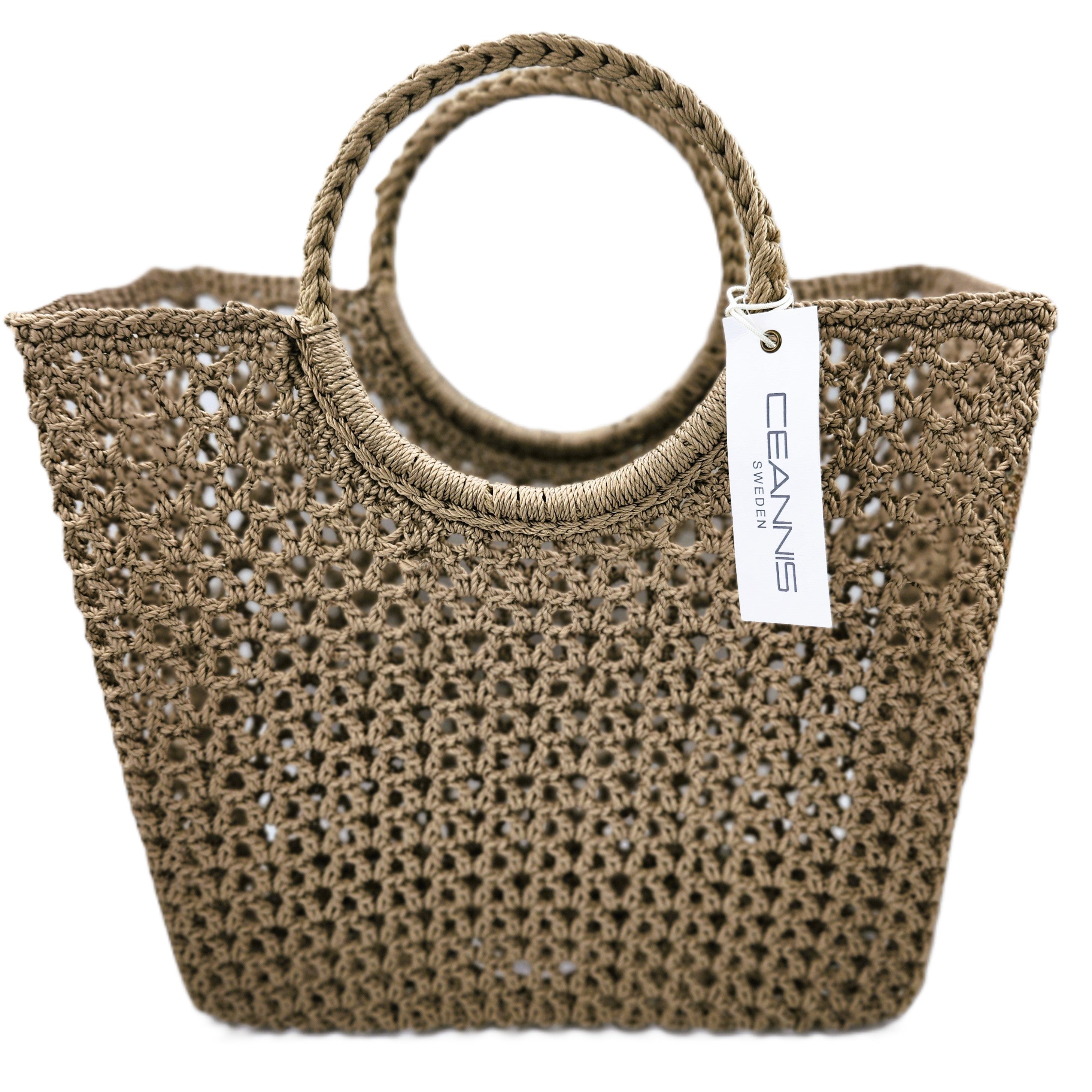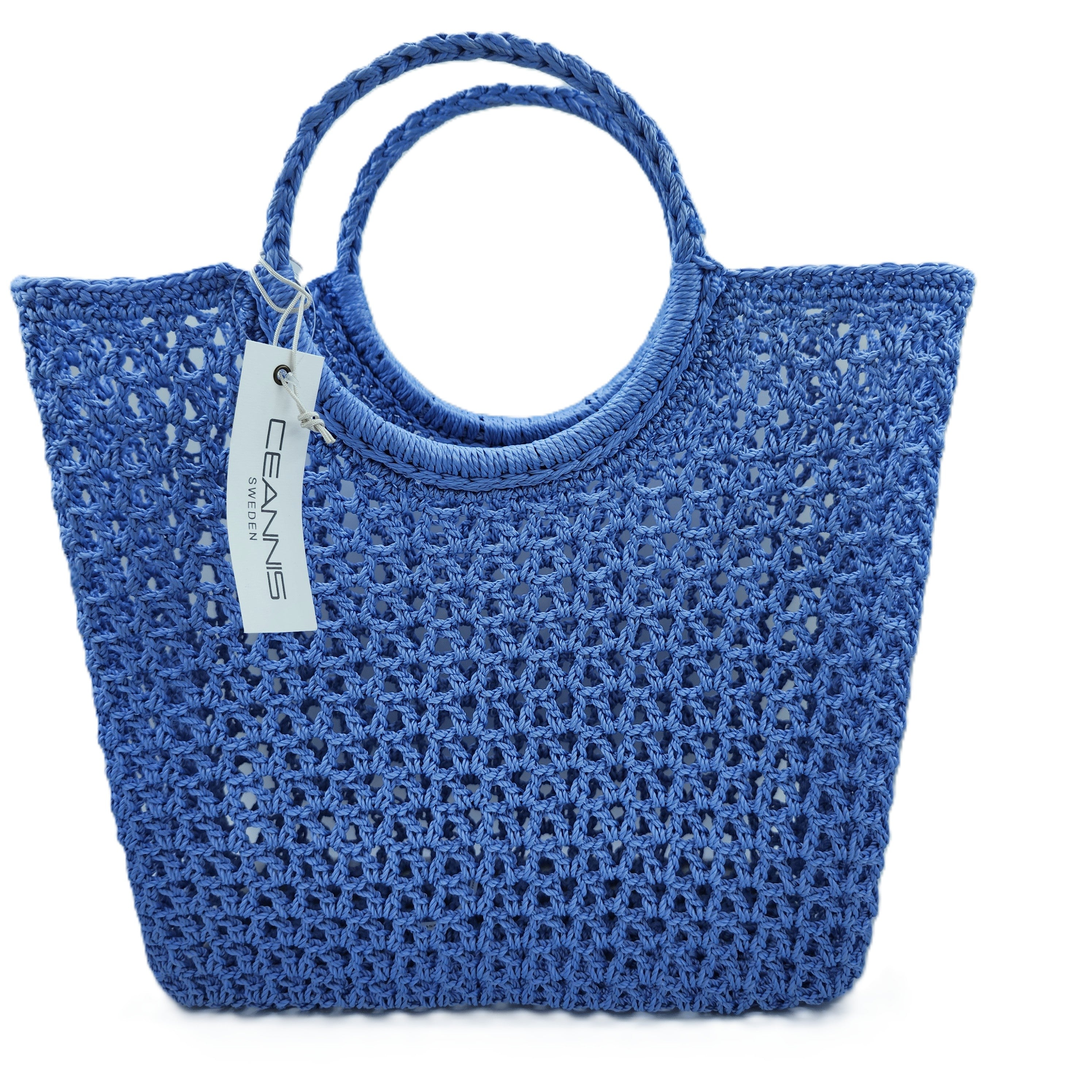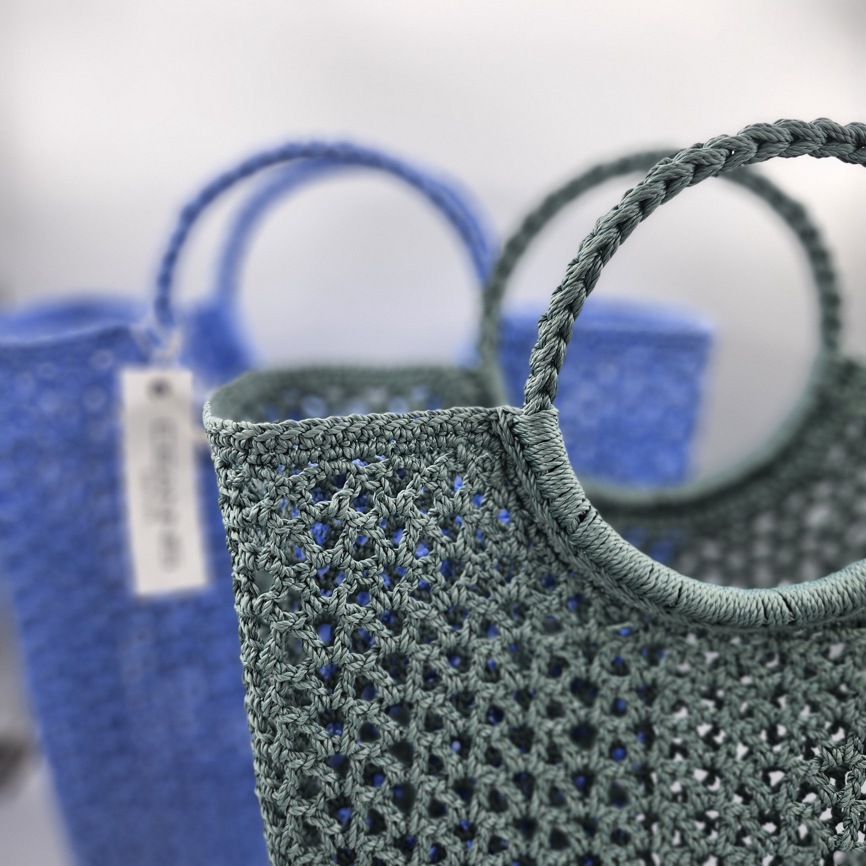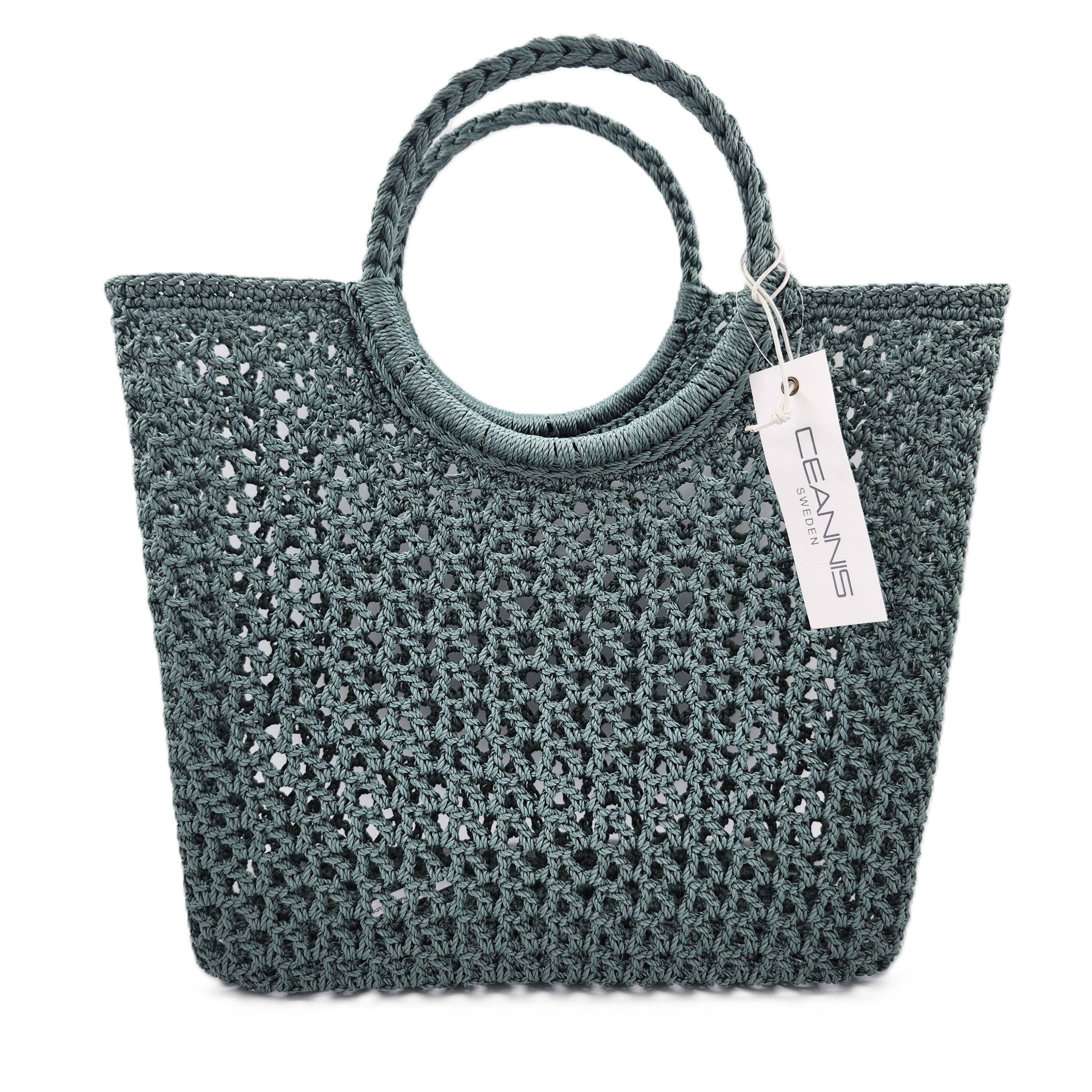 These stylish crochet baskets from Ceannis combine style and function. This roomy bag is crafted in a beautiful pattern and sits comfortably over the shoulder. A must have for an elegant look, and available in two colours, dusty green and light blue.