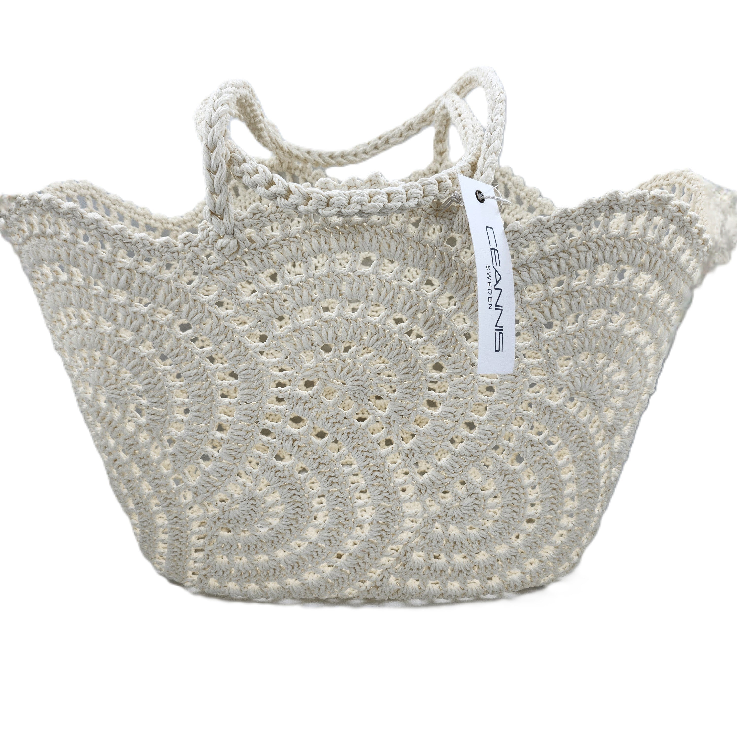 This simple and elegant crochet basket from Ceannis combines style and function. The outer is made from a water resistant woven polyester thread.