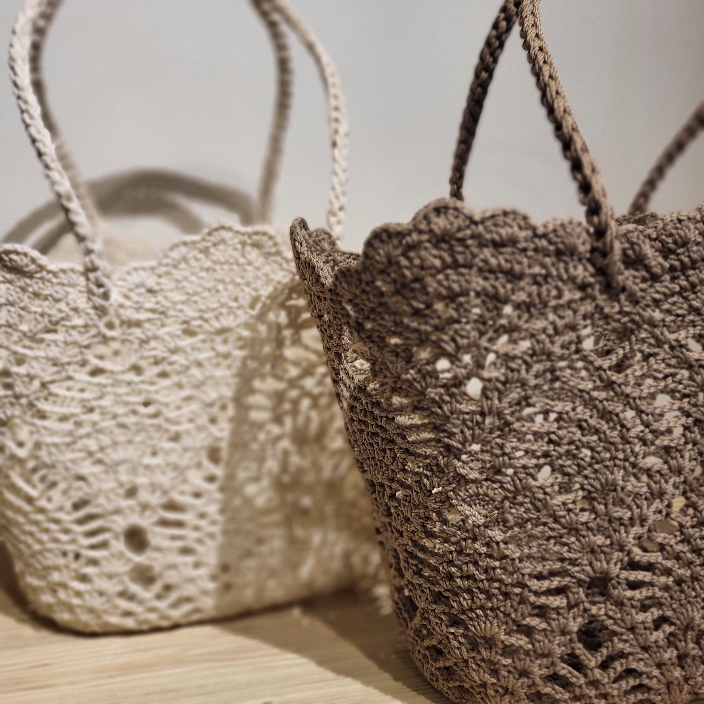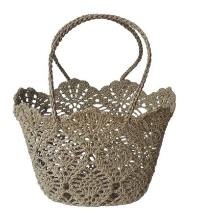 These stylish crochet baskets from Ceannis combine style and function. This roomy bag is crafted in a beautiful pattern and sits comfortably over the shoulder. A must have for an elegant look, and available in two colours, white and sand.