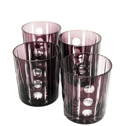 This exquisite set of 4 hand-cut coloured glassware in classic retro design are the perfect addition to your table decoration. The 'Old Fashioned' glass or Rock Glass is a short tumbler used for serving spirits, such as whiskey on the rocks or gin and tonic. They’re great for gifting on special occasions such as weddings, anniversaries, and birthdays as well as festive occasions such as Christmas, New Year and Thanksgiving.