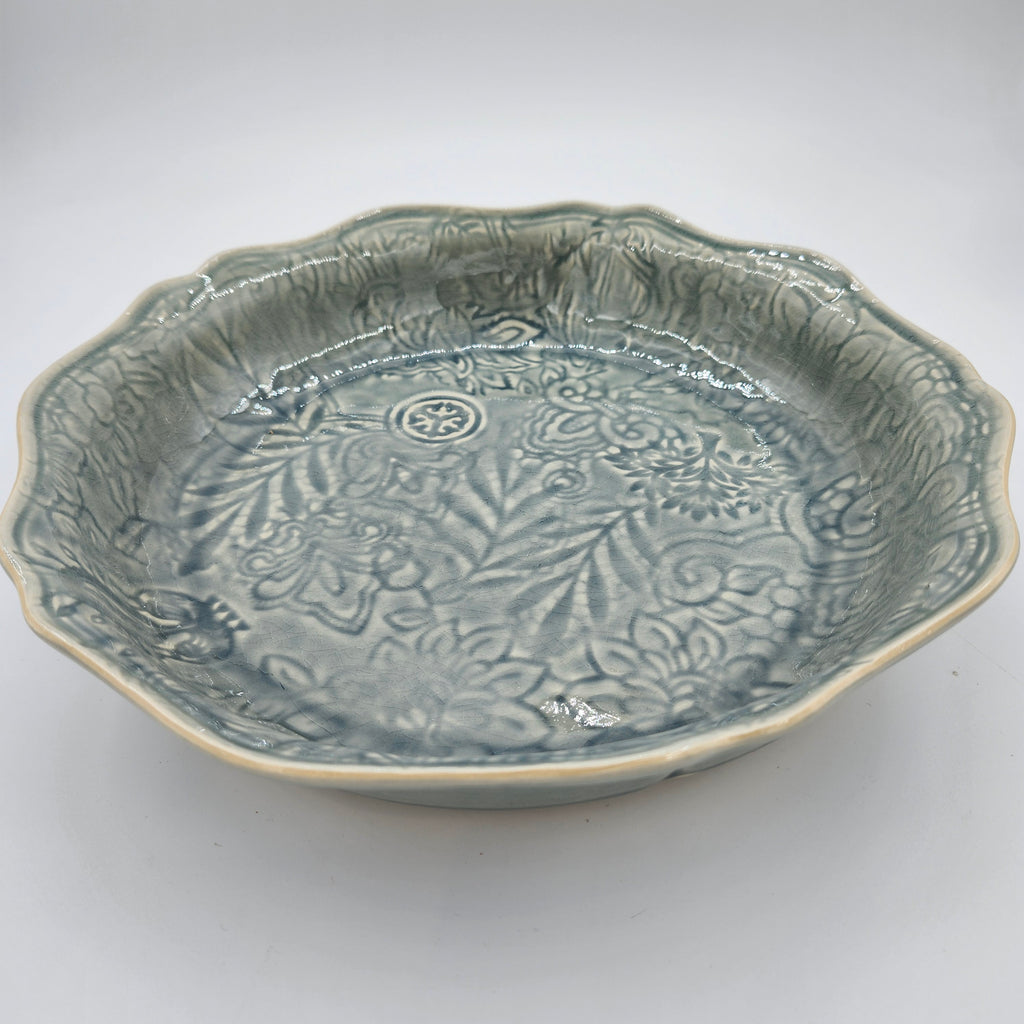 This coloured ceramic pie dish in Antique could be used either as a pie dish, or a serving dish for vegetables, or even a fruit bowl. Pair with other Sthal serving dishes and table ware.