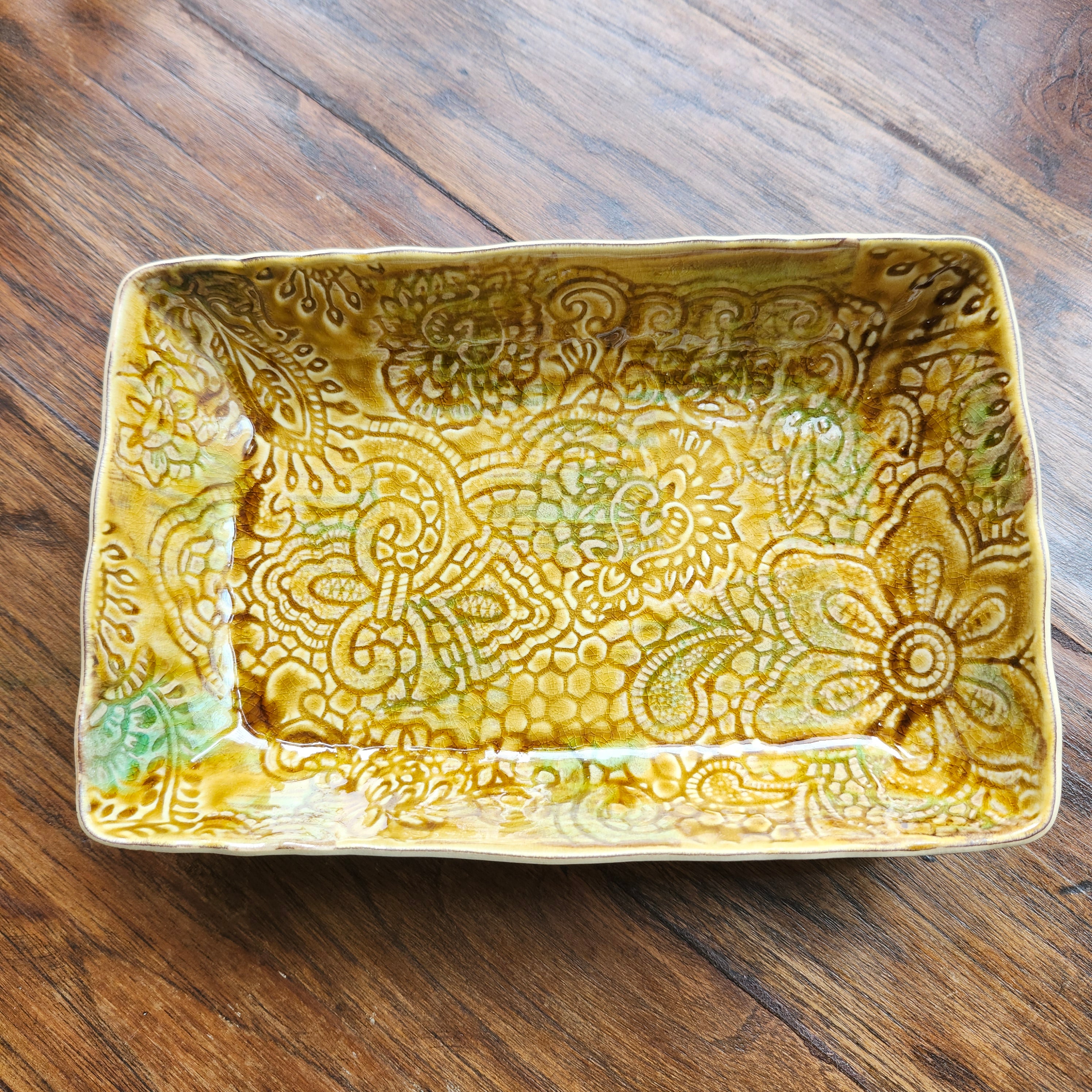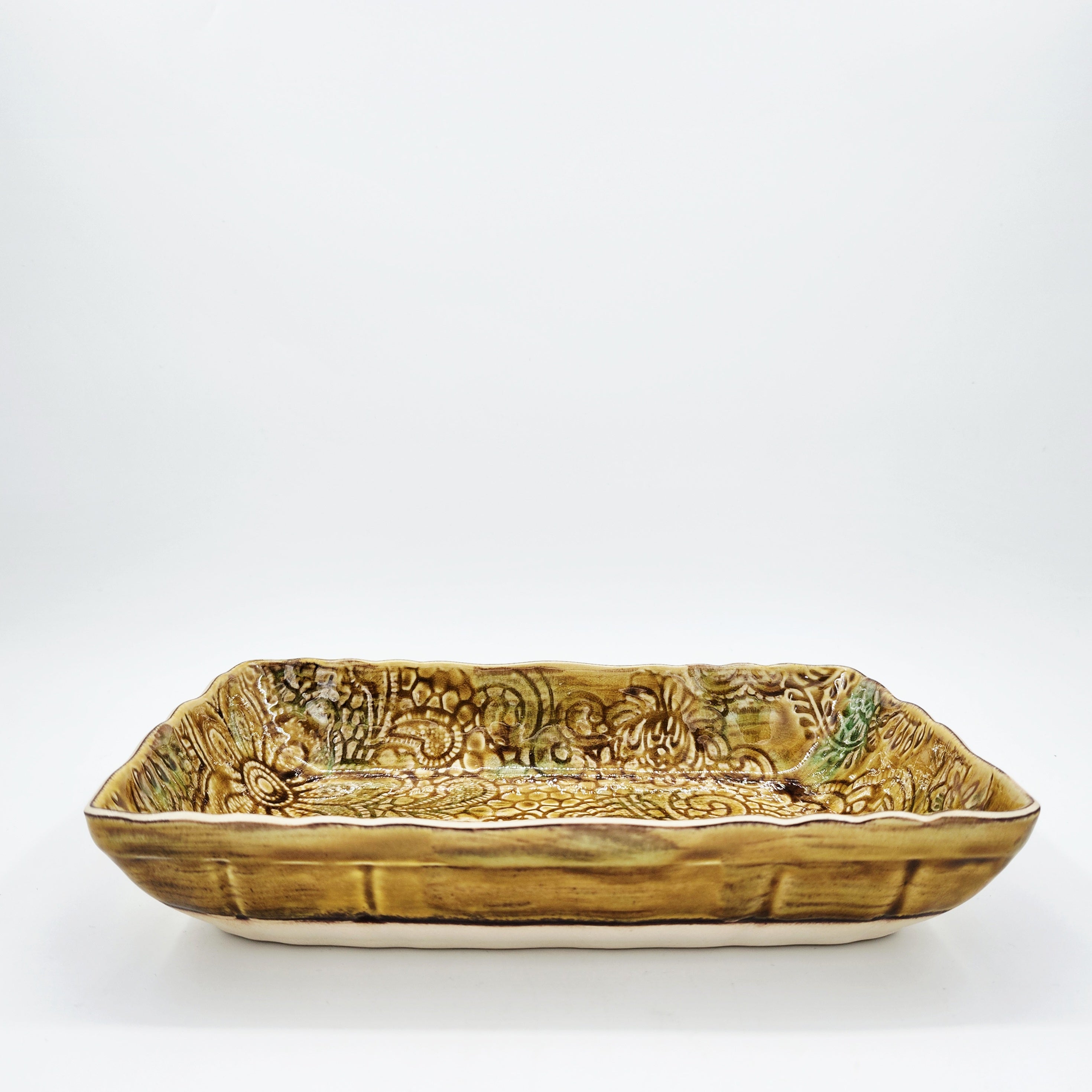 This small ceramic gratin dish in 'pineapple' could be used either as a serving dish, or could be used for roasting or baking for a stylish oven-to-table dish. Pair with other Stmhal serving dishes and table ware.