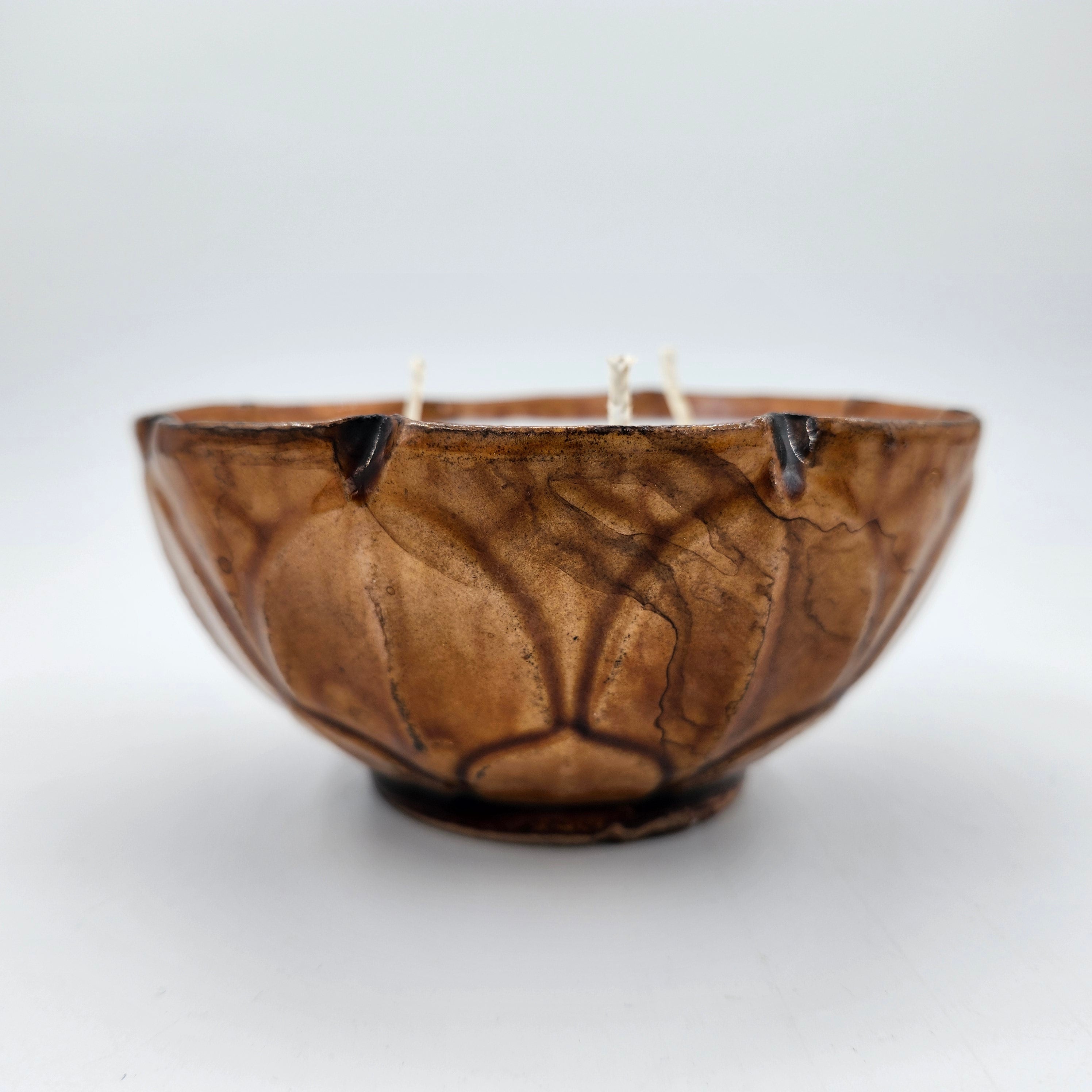 A beautiful scented candle in a rich amber coloured bowl with a leaf pattern, from Old Hong Kong Lights. Available in four different scents, each piece is one-of-a-kind. The candle comes in a gift box.