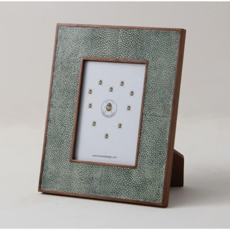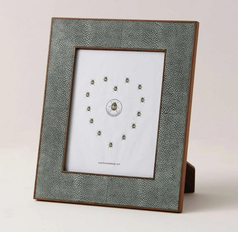 We adore Forwood Design's Classic Photo Frames in Lincoln green shagreen. The large size fits standard 8 x 10″ photos and the small fits 5 x 7". The frames are covered with their unique faux shagreen and beautifully backed with polished walnut wood. The frame can be placed horizontally or vertically.