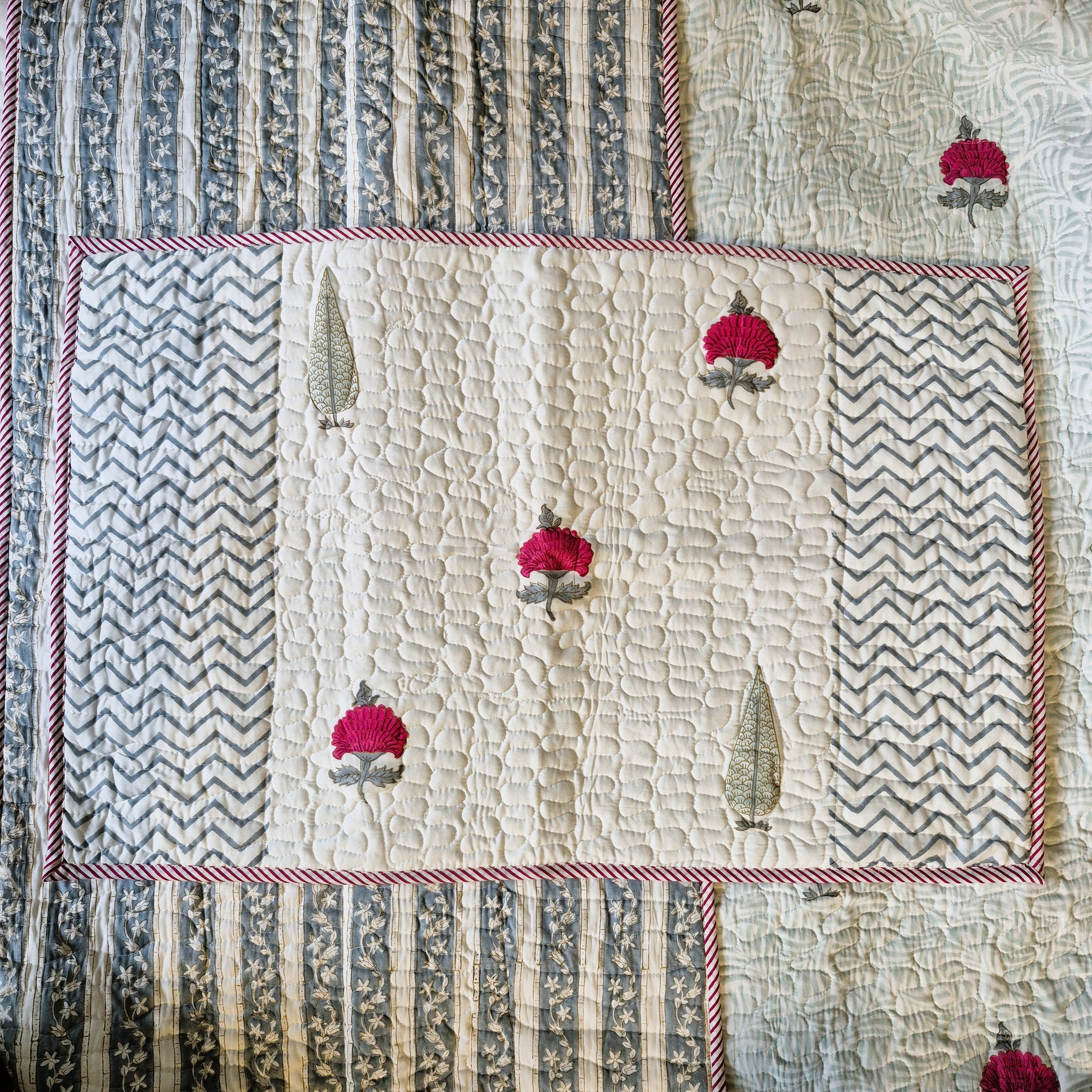 Block Print Bedspread w/Pillowcases Poppy Cypress