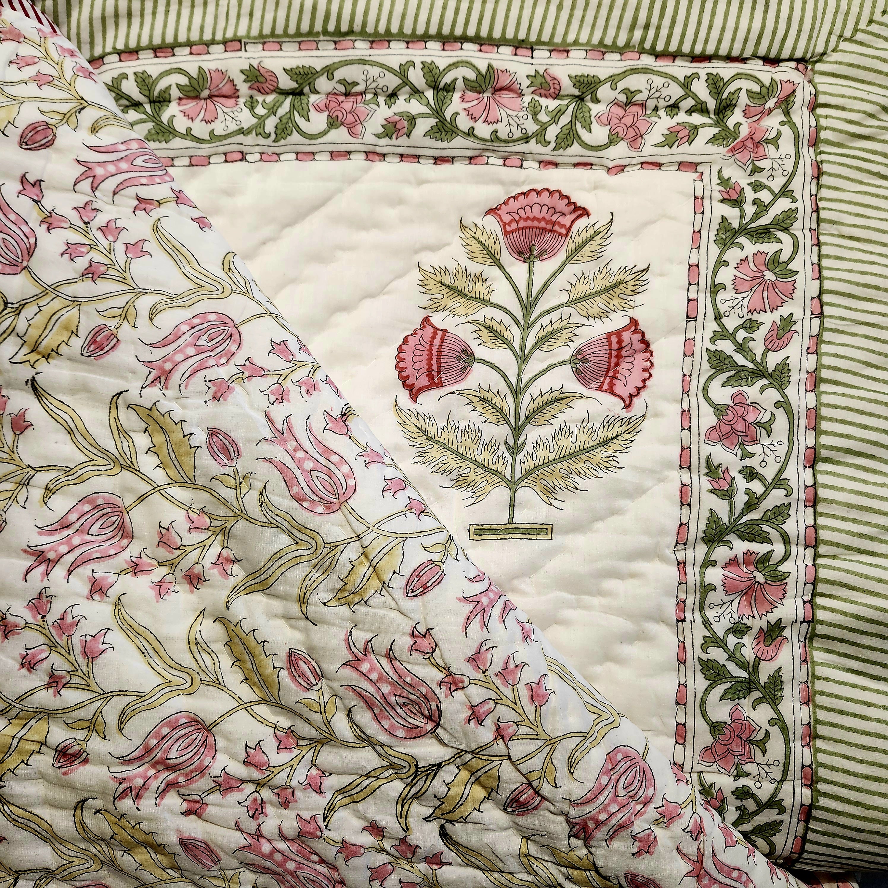 We have many other block print quilts in stock, which are not yet on the website.  Please contact us with your queries or requirements if you cannot find what you need.