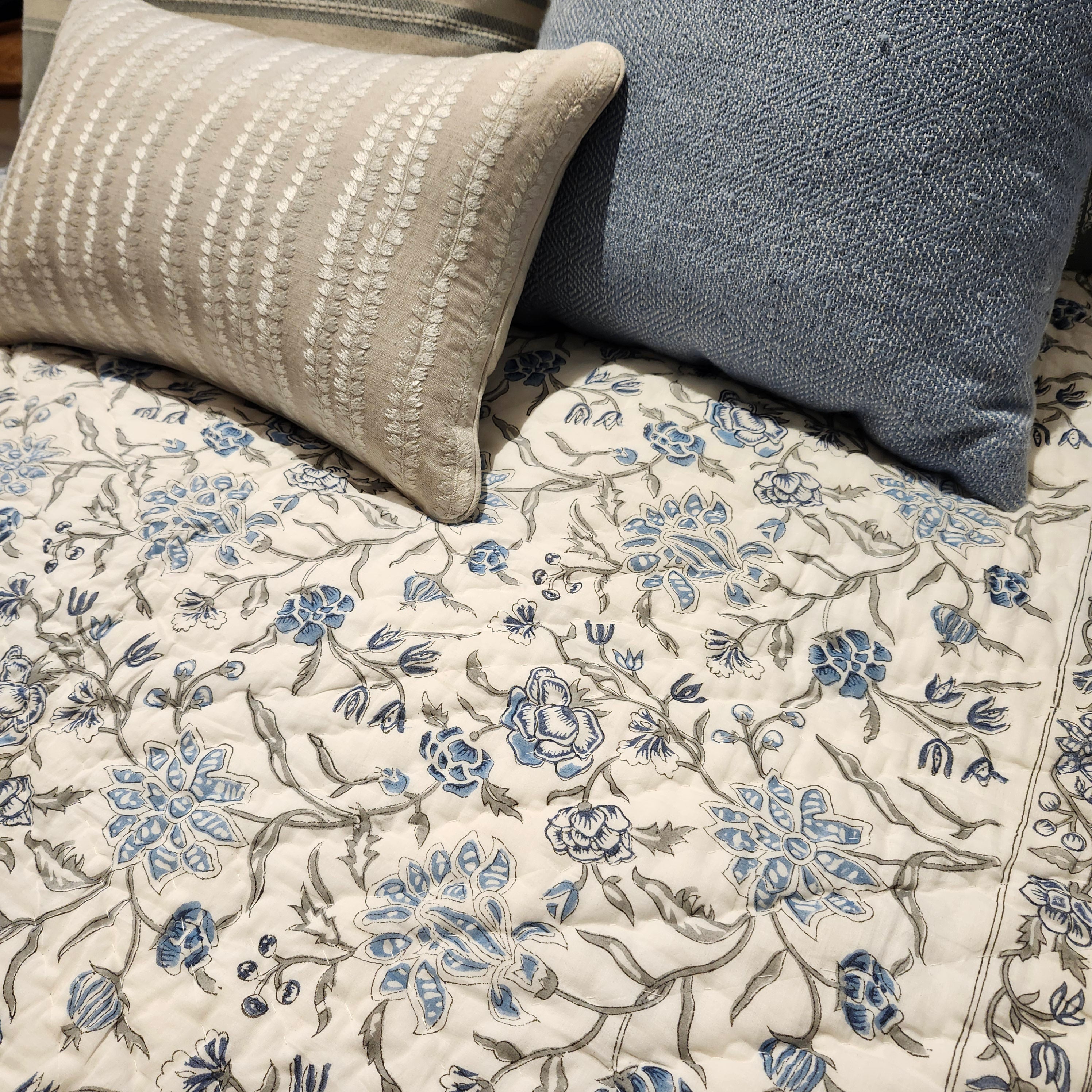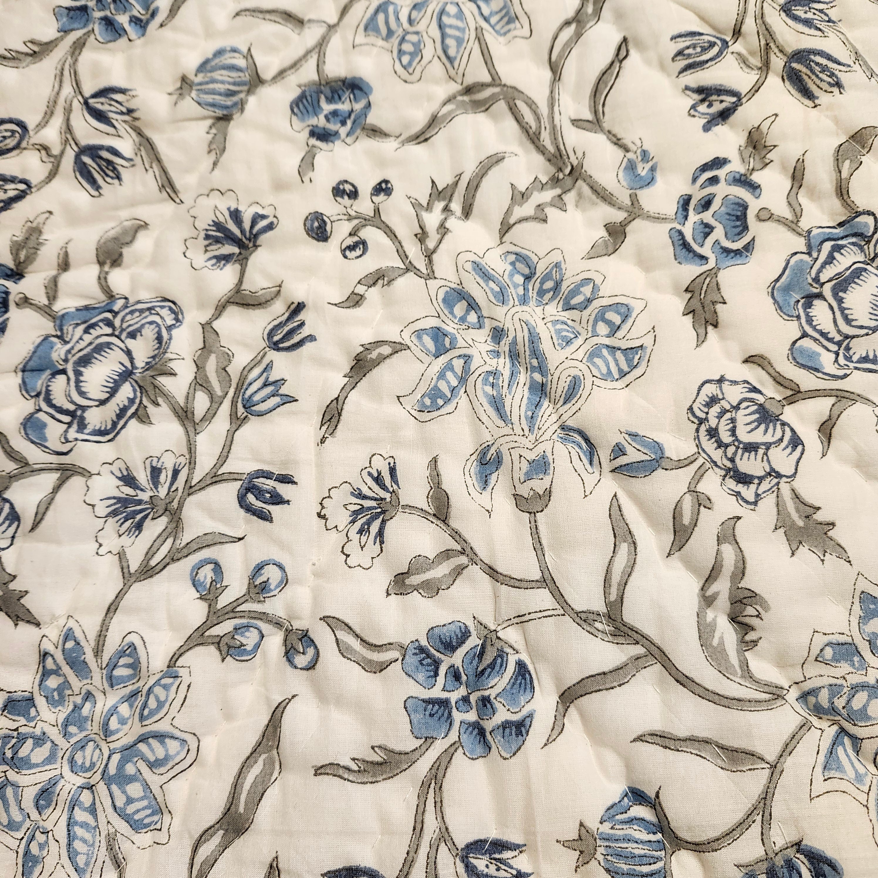 Block Print Quilt Single Flower Blue