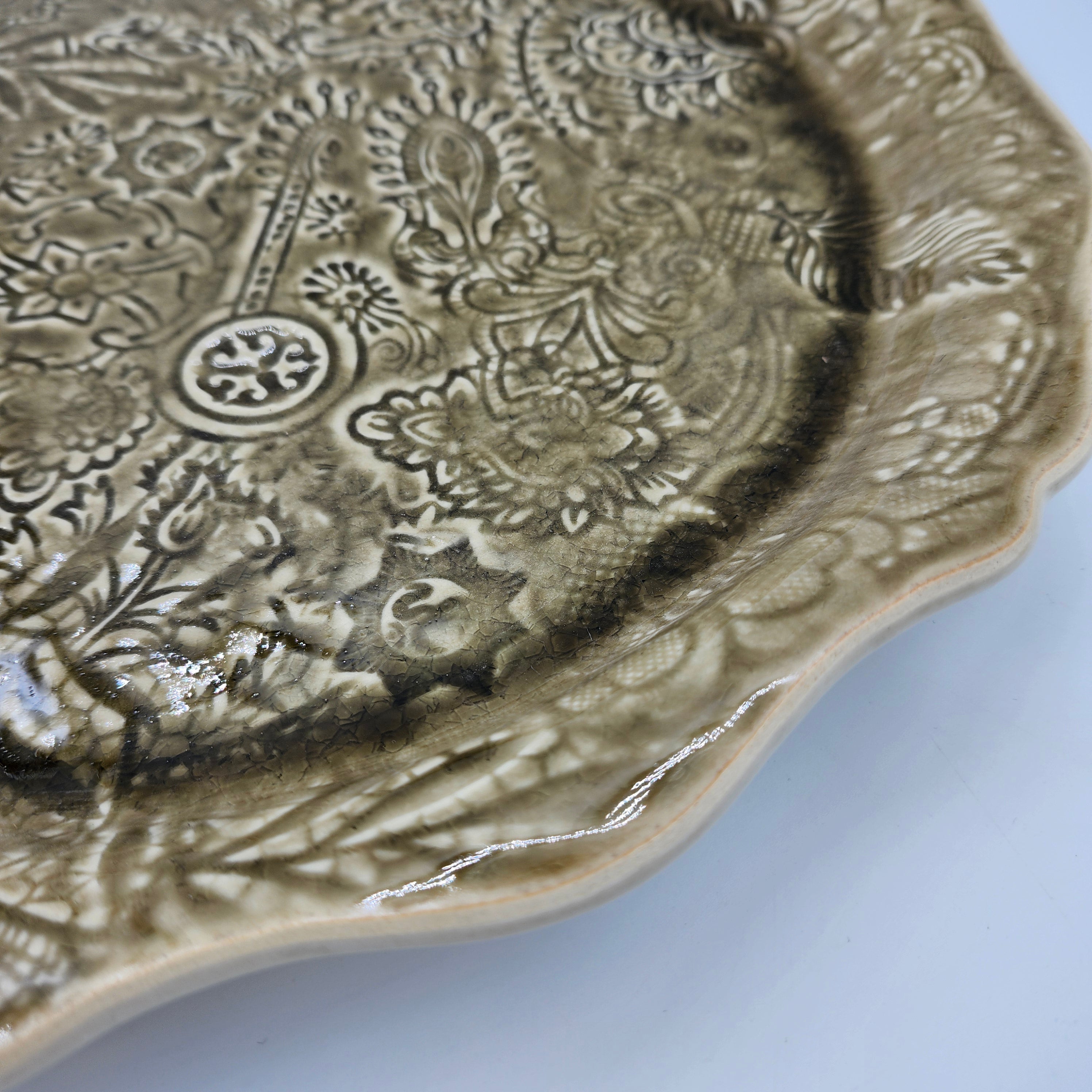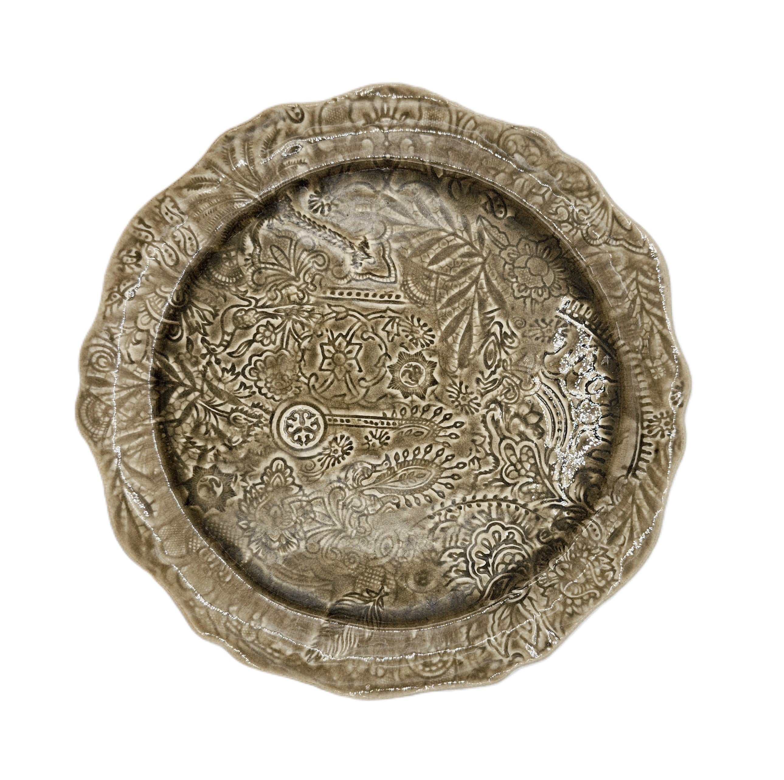 This round ceramic pizza / serving plate in 'sand' is the perfect size for a pizza, but could also be used for serving canapes, or as a tray.  It also makes a beautiful charger plate for the Sthal dinner plates.