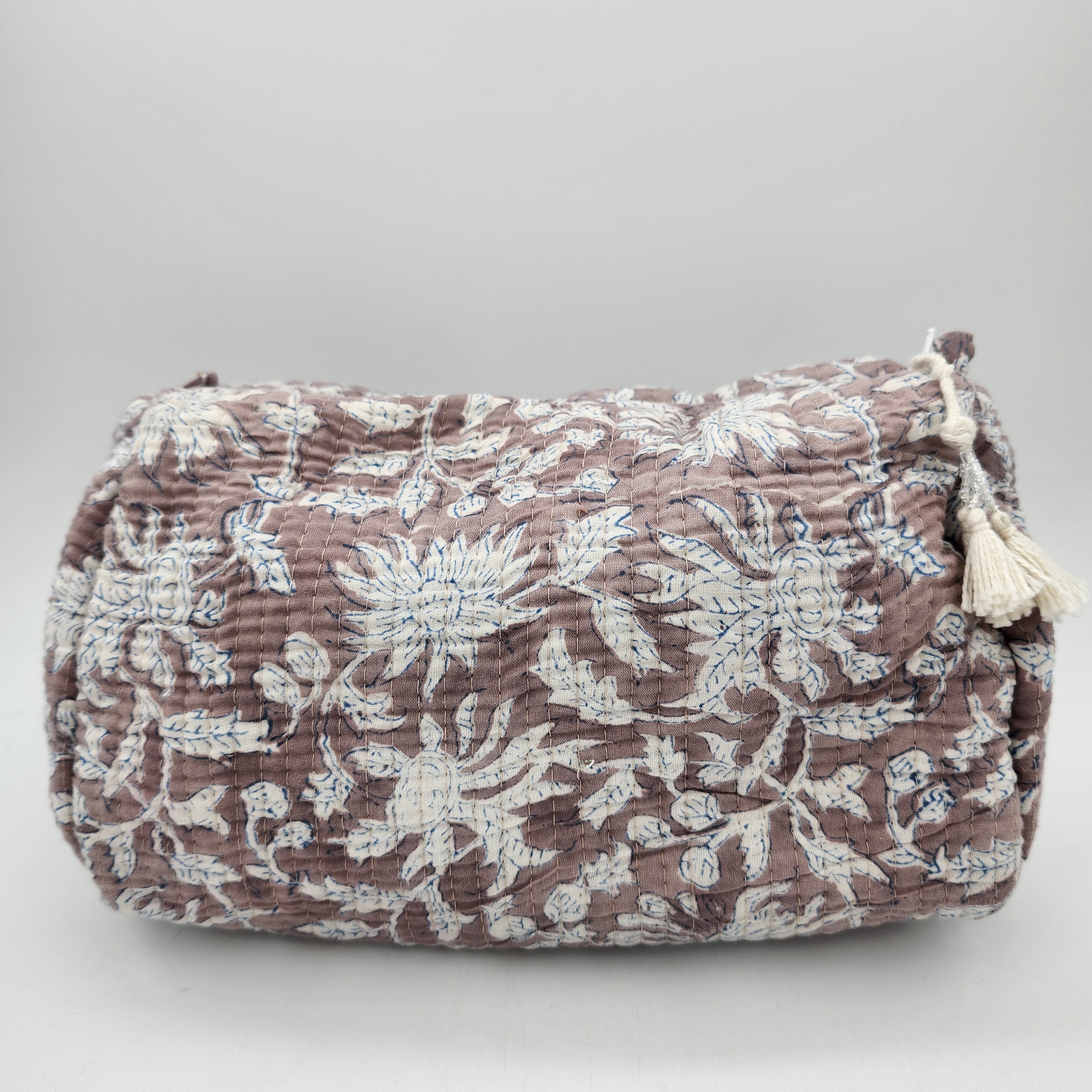 Presenting our block printed wash bags – a fusion of artistry and utility. Handcrafted with care, this wash bag features a classic floral print, that adds a tasteful touch to your travel and daily routines. With a spacious lined interior with four internal pockets, and a sturdy zipper closure, it effortlessly holds your toiletries, cosmetics, and essentials in style