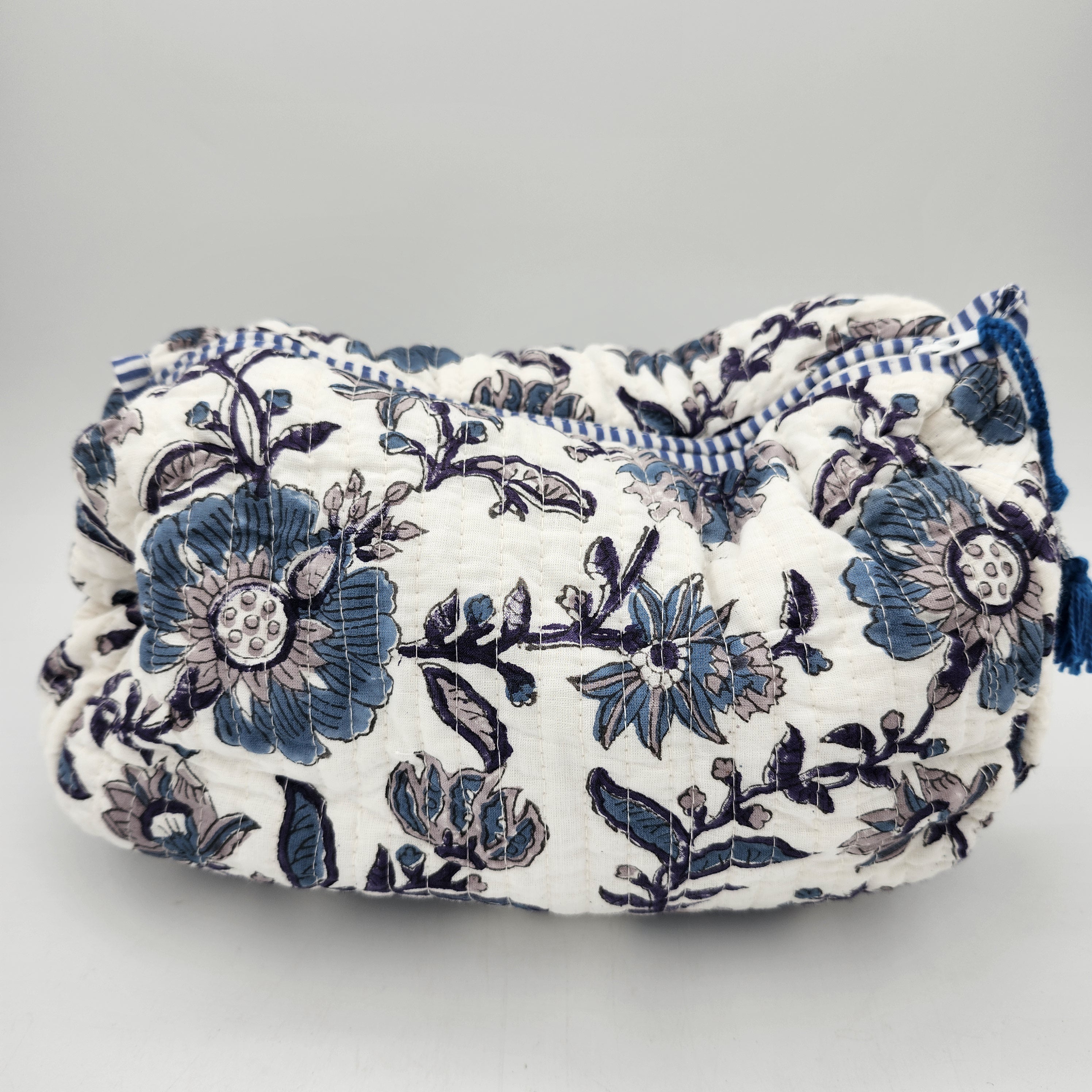 Presenting our block printed wash bags – a fusion of artistry and utility. Handcrafted with care, this wash bag features a lovely floral pattern in classic blue & white, that adds a tasteful touch to your travel and daily routines. With a spacious lined interior with four internal pockets, and a sturdy zipper closure, it effortlessly holds your toiletries, cosmetics, and essentials in style