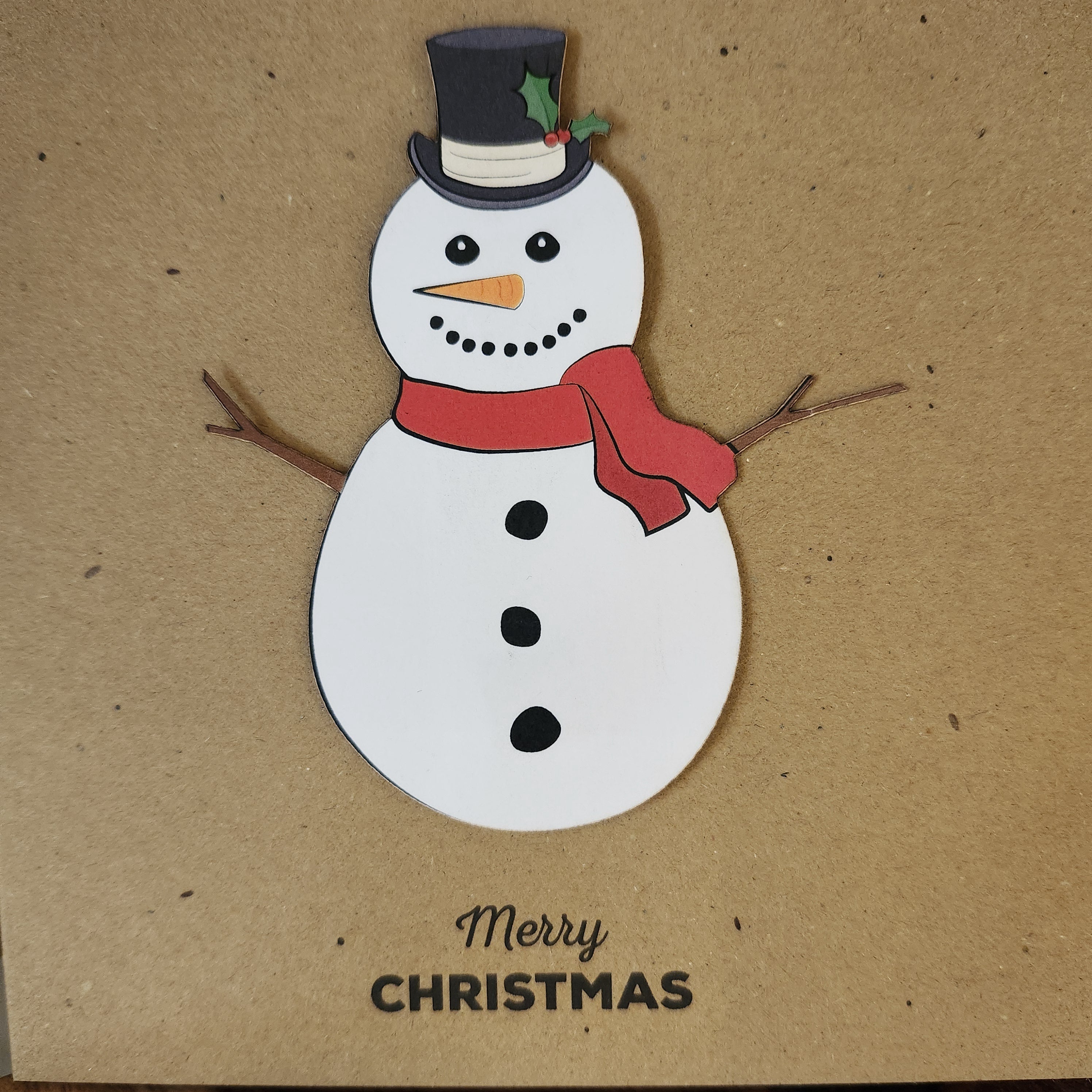 Produced on FSC approved paper, this card has a snowman cut out, giving a 2D effect. Blank inside. The matching envelope has a red and white striped interior.