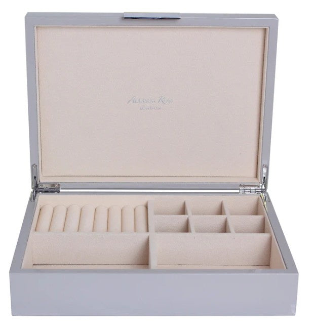 Lined in cream suede with a beautiful silver hinge, this jewellery box is perfect for keeping those special pieces safely stored.