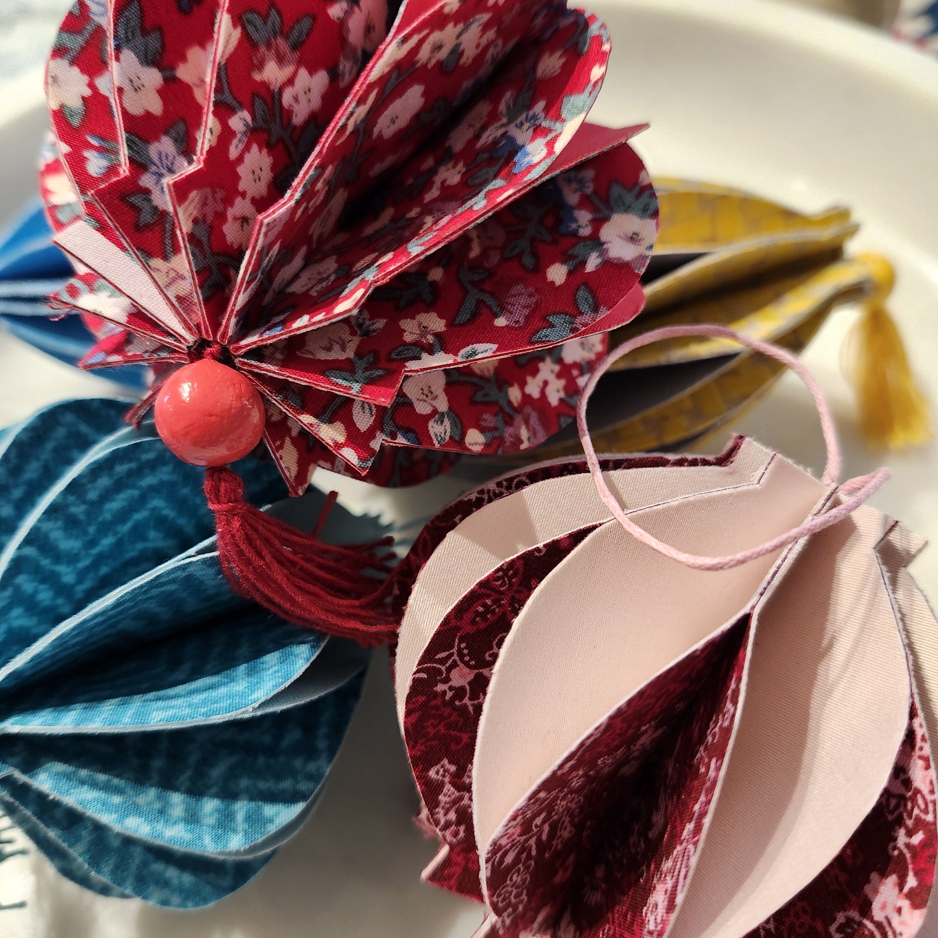 These enchanting lanterns are made by Mekong Quilts, a Vietnamese non-profit organisation set up to help women find employment. Made from card and silk or other fabrics.